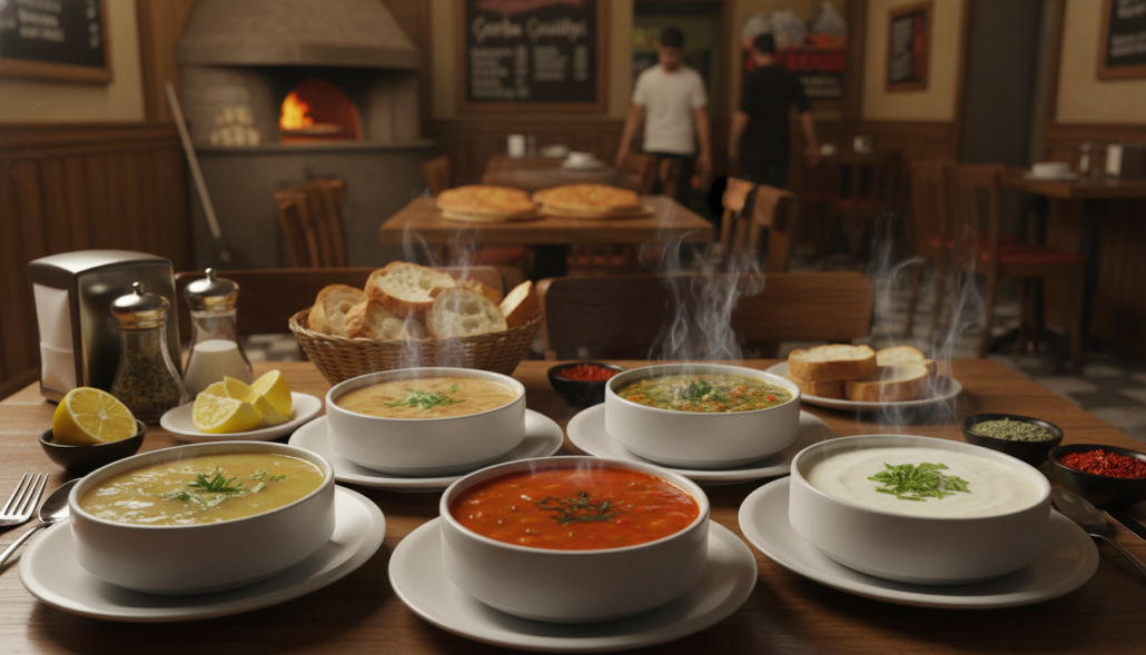 Günlük hazırlanan çorbalar, pideler ve yemekler